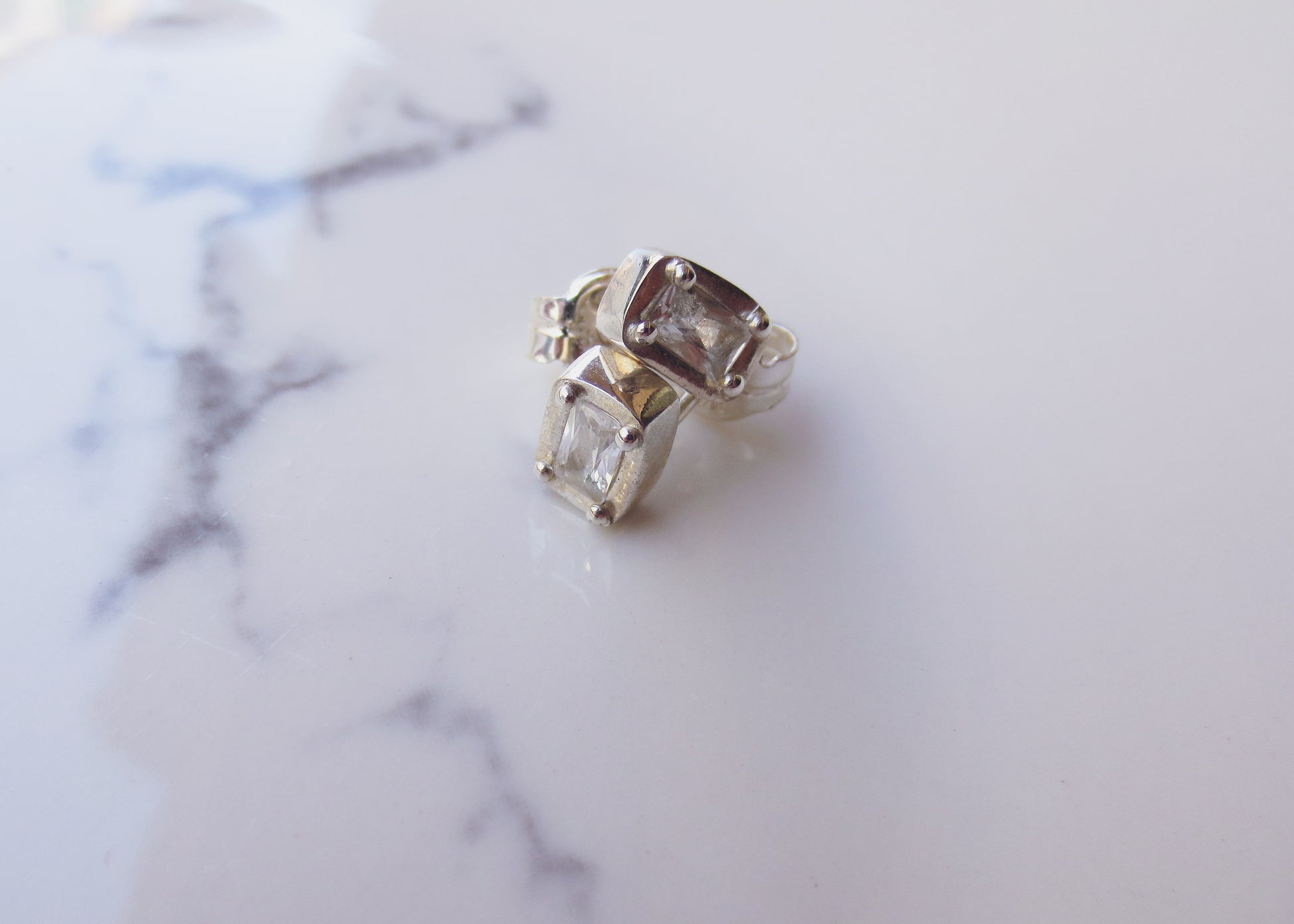 Graceful curves meet radiant sparkle in our Baguette Sapphire Stud Earrings. Featuring free-flowing metalwork that elegantly wraps around a brilliant lab-grown white sapphire baguette, these studs embody movement, fluidity, and timeless sophistication.